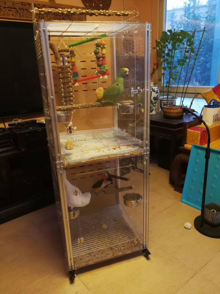 Acrylic bird cage Stainless steel bird cage upper and lower double layer luxury large bird cage gray machine bird cage Keck Amazon