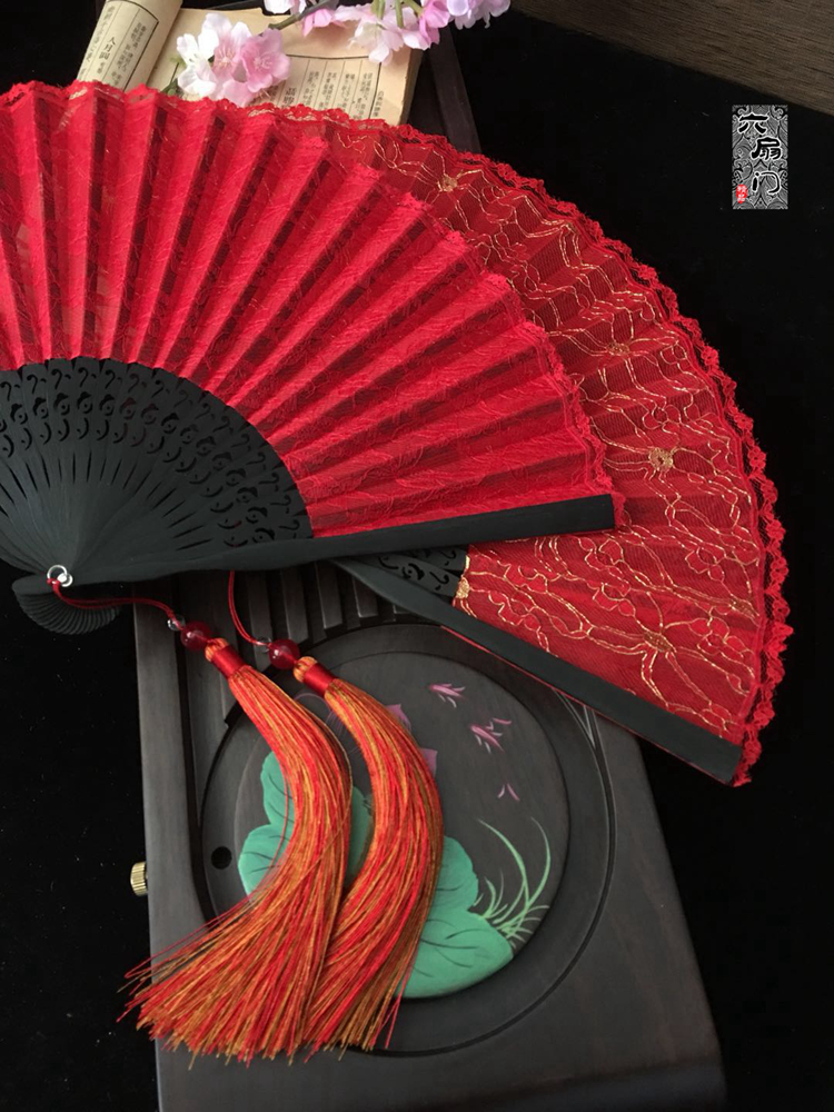 Big red lace fan Red red tassel big red lace fan with gold silk red tassel black lace fan black red fringe powder lace fan fringe powder white shell white tassel shell black big bead black with red
