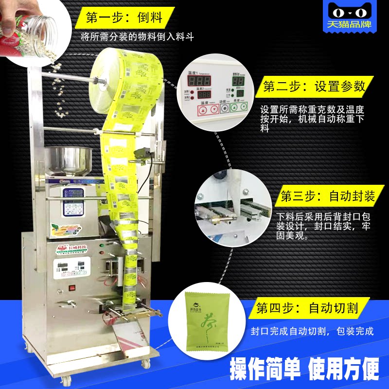 Fully automatic backsealing packaging machine grain powder medlar grain tea dried fruit automatic dosing and sealing machine