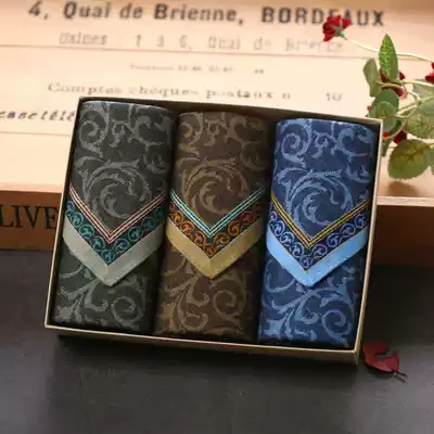 Blue and white porcelain deep sea blue moonlight purple gray Khaqi high-grade jacquard combed cotton side length 43 * 43cm high ancient porcelain 3 color gift box high-grade jacquard combed cotton side length 43 * 43cm map