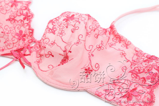 02 European and American embroidery lace mesh ultra-thin transparent sexy temptation no sponge underwear bra can be equipped with T pants suit