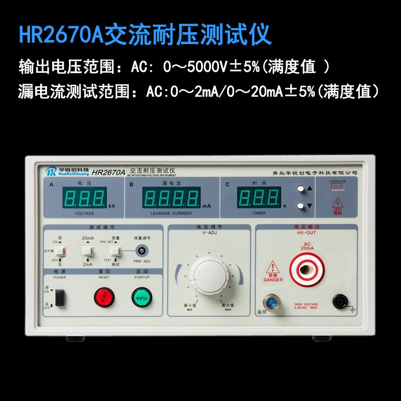 Pressure-pressure instrument tester High pressure pressure resistant instrument 5KV digital display pressure resistant tester HR2670A (5KV AC)