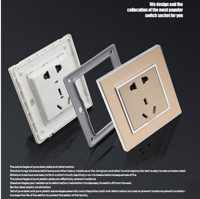 BOTON BOTON shallow champagne gold switch socket wall power high end switch socket panel three open monolithic control