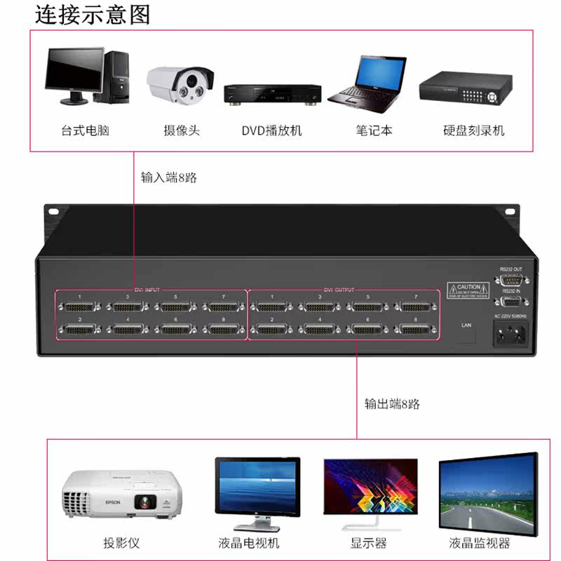 Matrix DVI switcher dispenser 8 in 8 out of 16 into 16 out of eight out of eight out with remote control HD DVI shareware