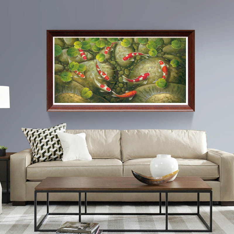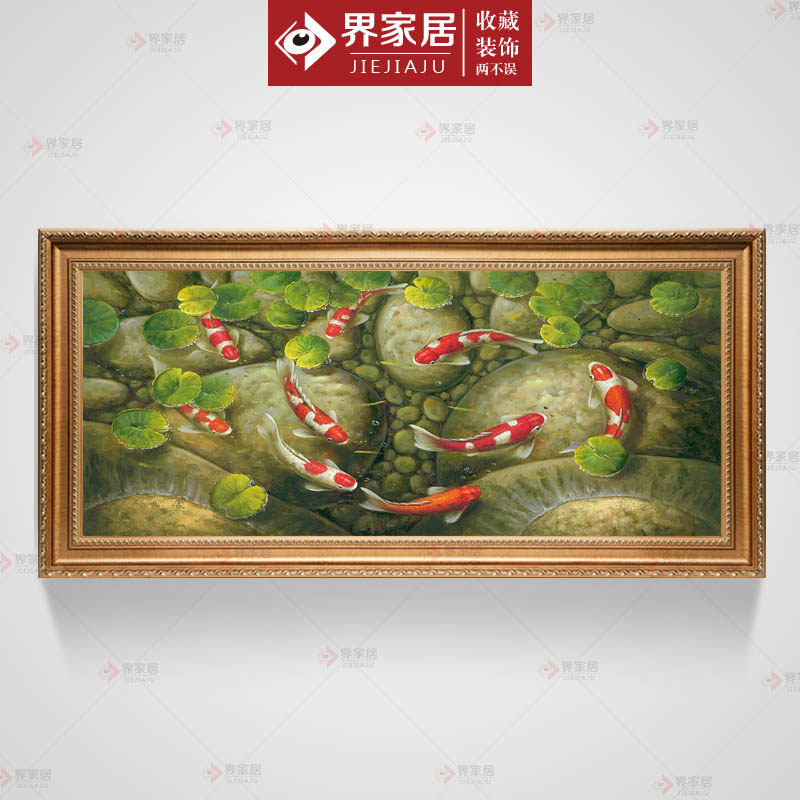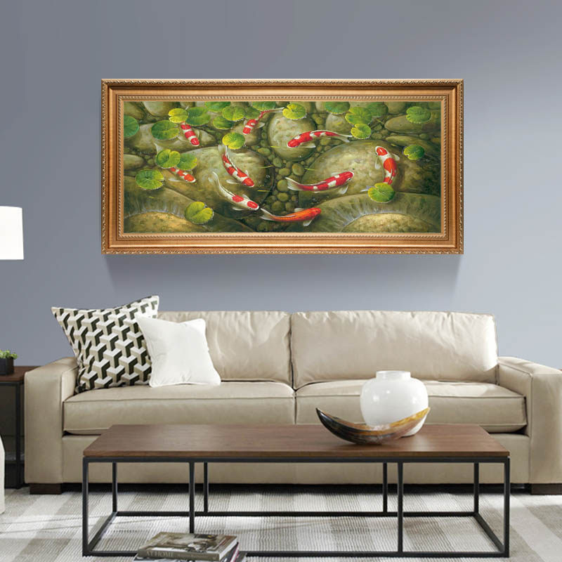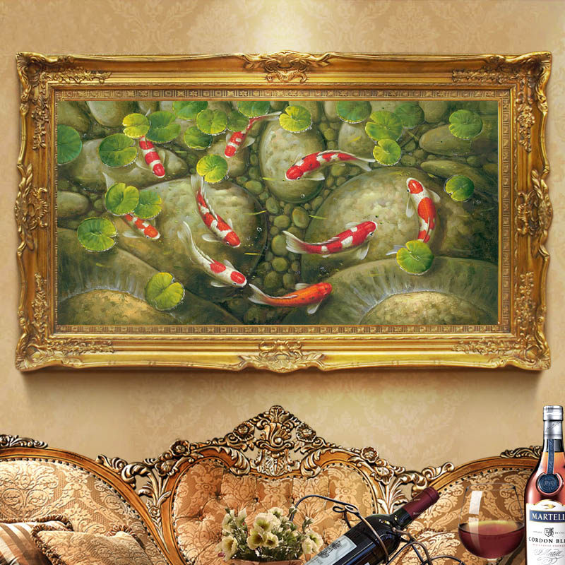 Pure hand painted oil painting Living room Bedroom Nine Fish Plot for Caixin carp New Chinese style Decorative Painting Sofa Background Wall by hand