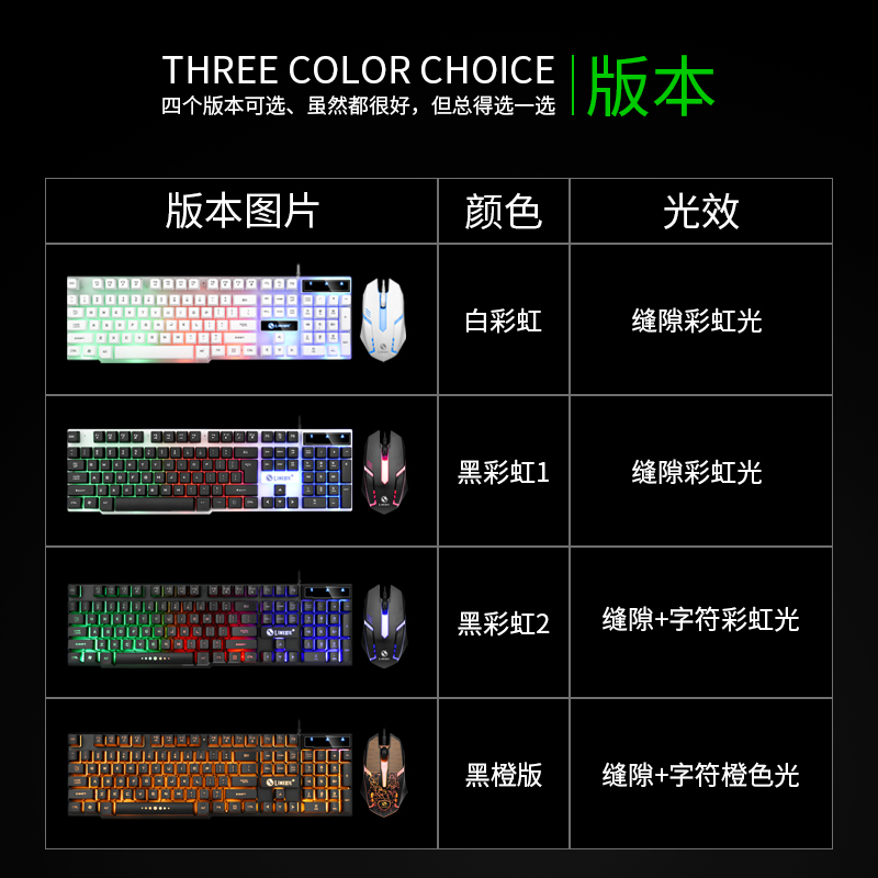 Force Beauty GTX300 Shining Key Mouse Suit USB Keyboard USB Slide Mouse Internet Cafe Glowing Game Kit Colorful Backlit