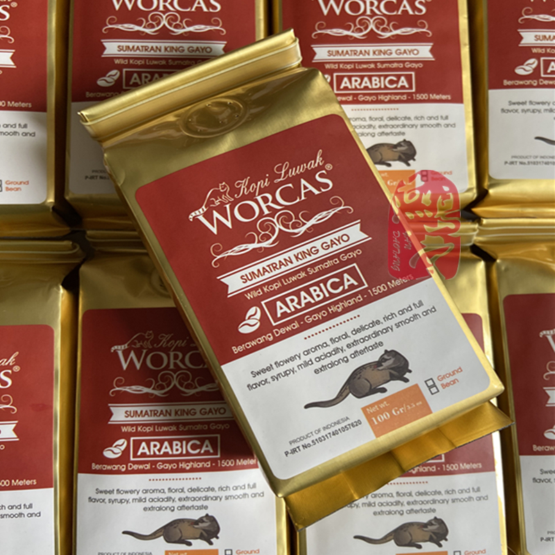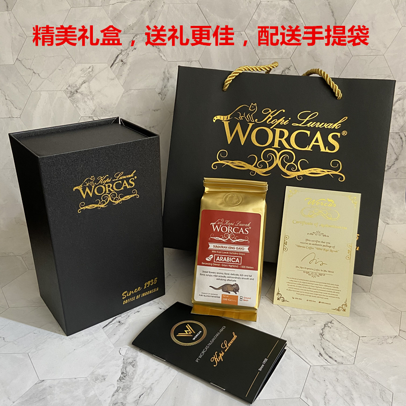 Indonesian brand worcas Sumatra cat poop coffee bean powder deep roasted mellow low acid 100g