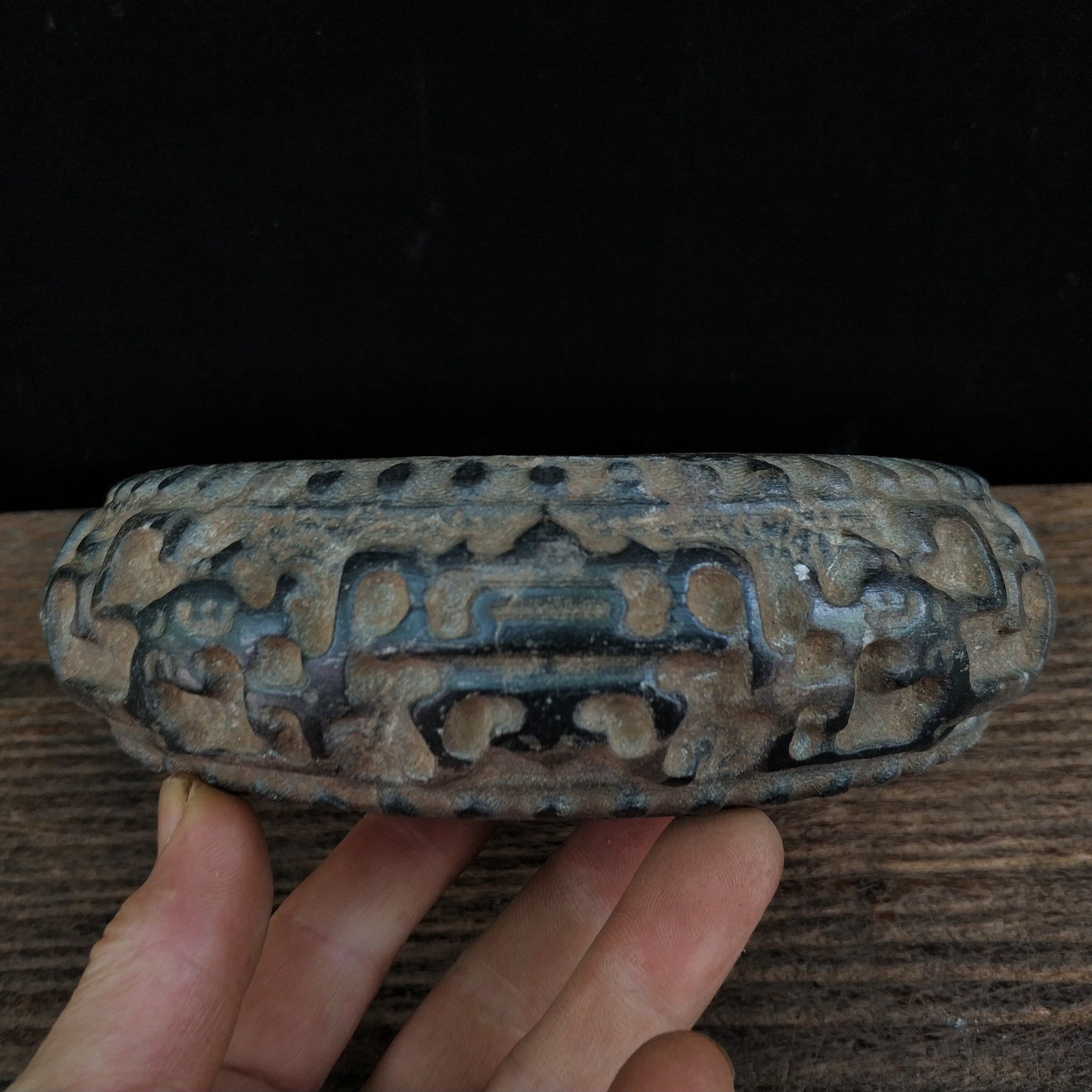Black Qingshi Stone Drum Stone Carving Town Paper Stone Lion Ink Stone Lions Ink-ink Animals Absorbing Veterinary Tea House Tea House Living-room Tea Mat Case Head Swing Piece