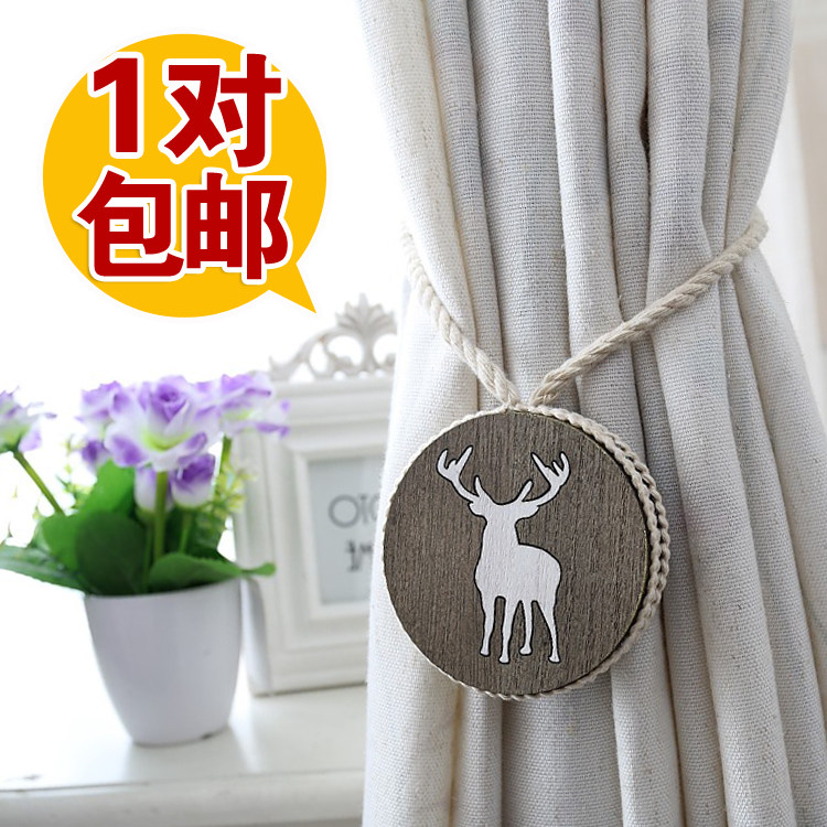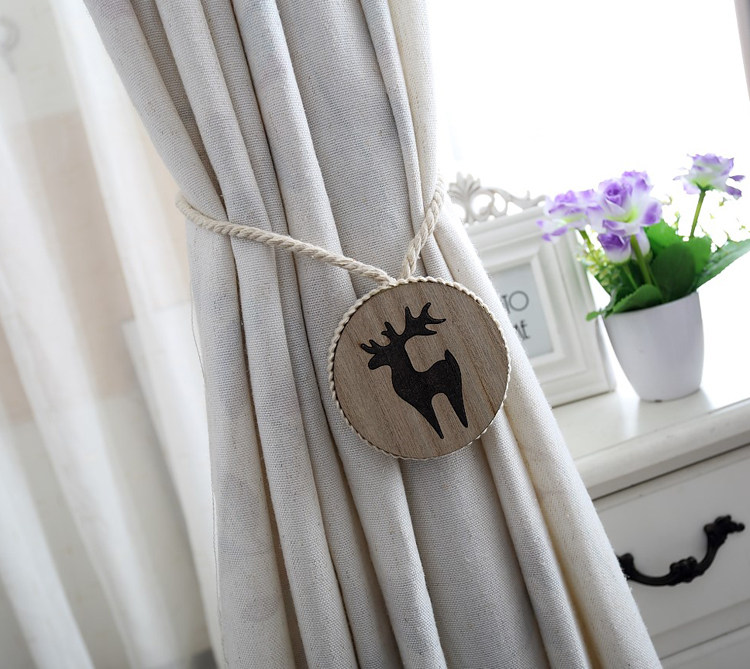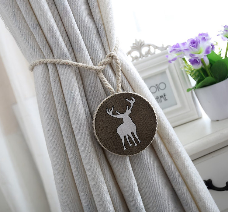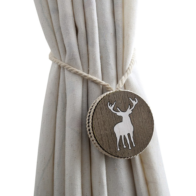 Nordic Cotton Thread Handmade Solid Wood Engraving Curtain Buckle Strap Tie Magnet Elk Deer Light Lavish Accessories Hanging Ball Decorations