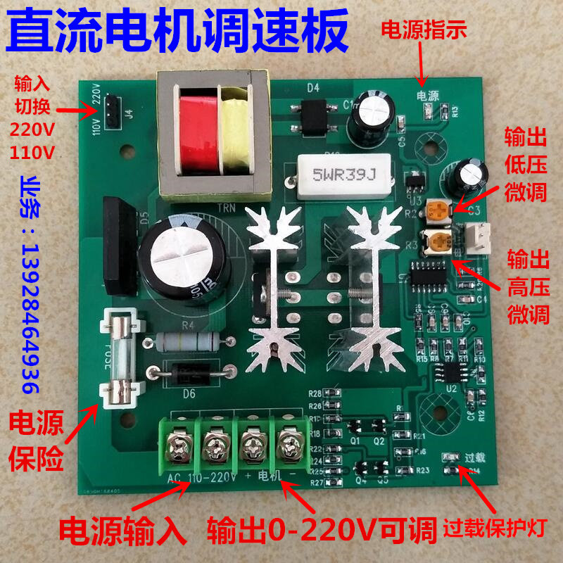 DC throttling thermoregulation DC 220V 110V Motor motors 10W-2000W Controller board