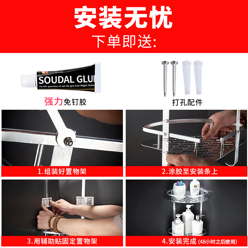Bathroom shelf Toilet toilet washstand Wall towel storage Bath free hole Wall-mounted powder room
