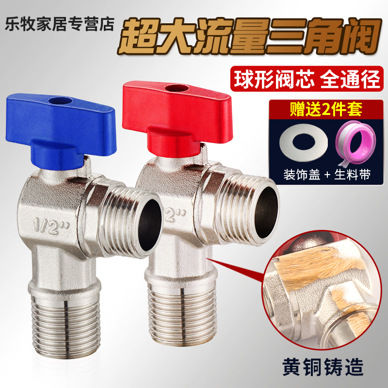 Copper ball core hot and cold water corner valve octagon valve 4 minutes 6 minutes full diameter gas electric water heater large flow triangle valve