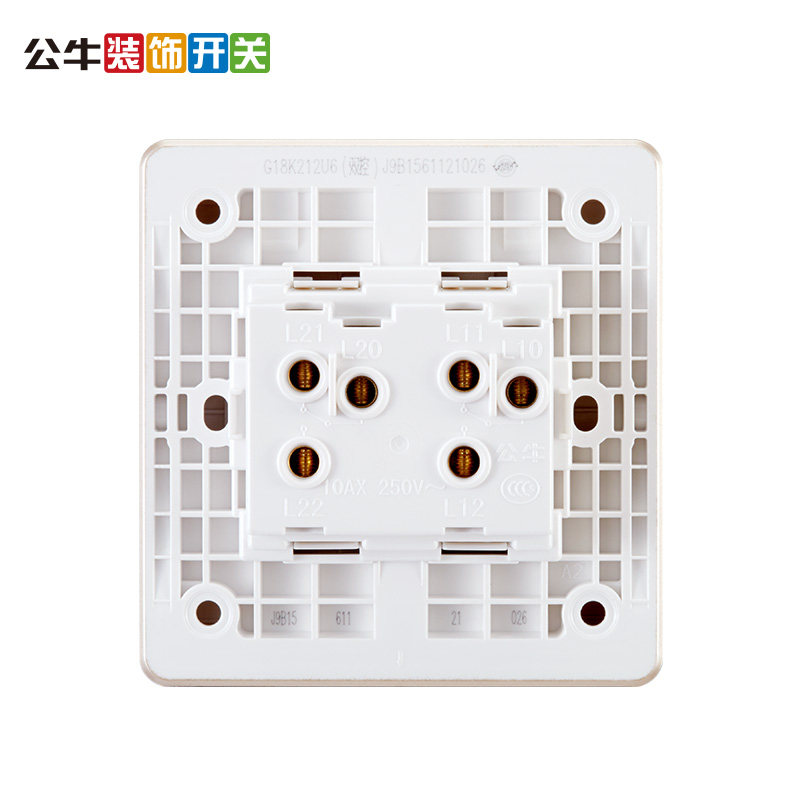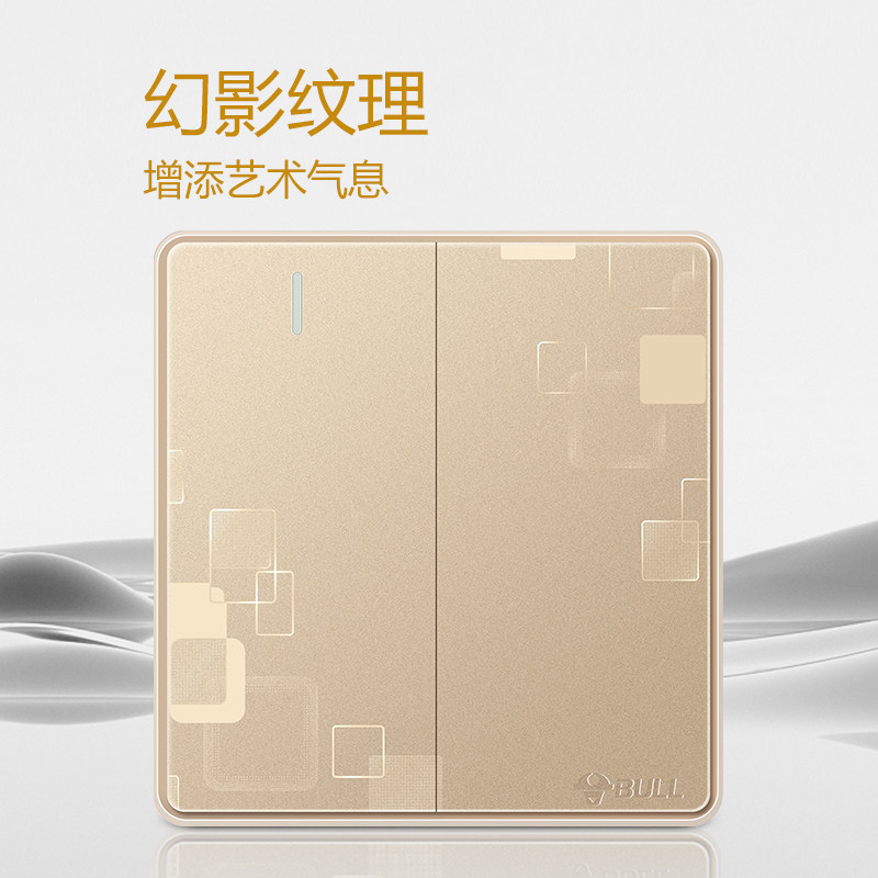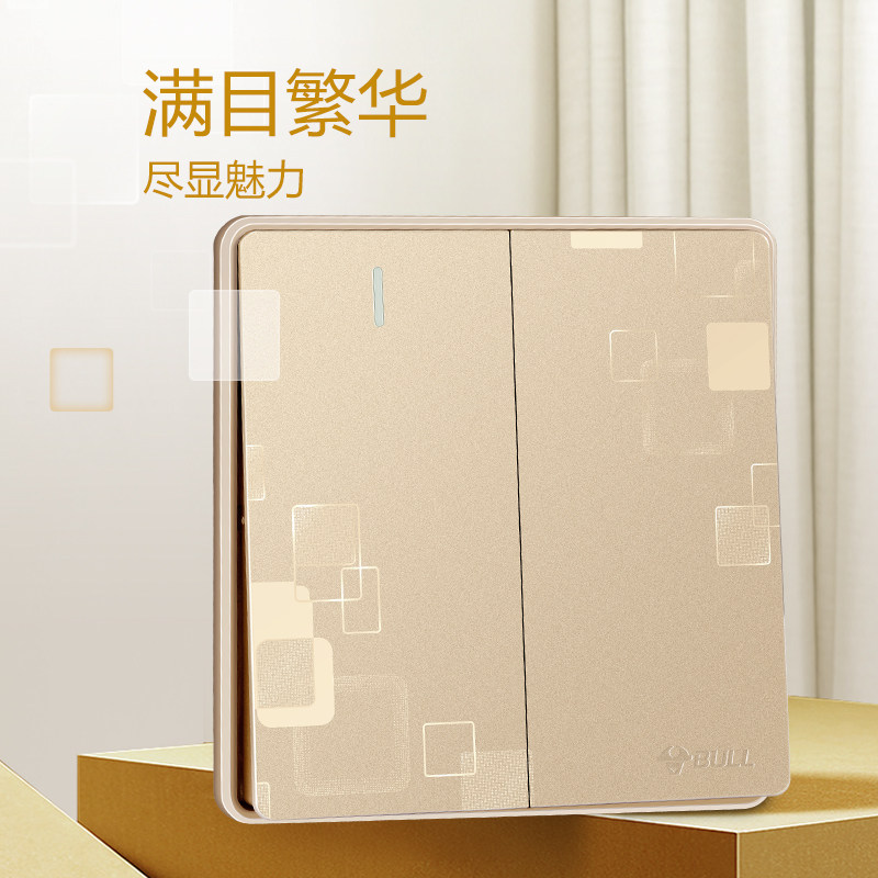 Bull socket flagship double switch double switch wall two 2-bit power supply Dual-bit dual panel two-open G18 gold
