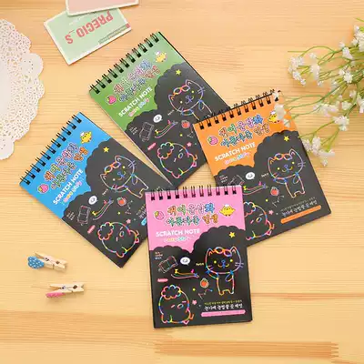 Children's trumpet scratch book Black 12 scrape paper graffiti painting book color scratch painting this colorful scratch painting book creative wax paper trumpet color sand black Kasha painting