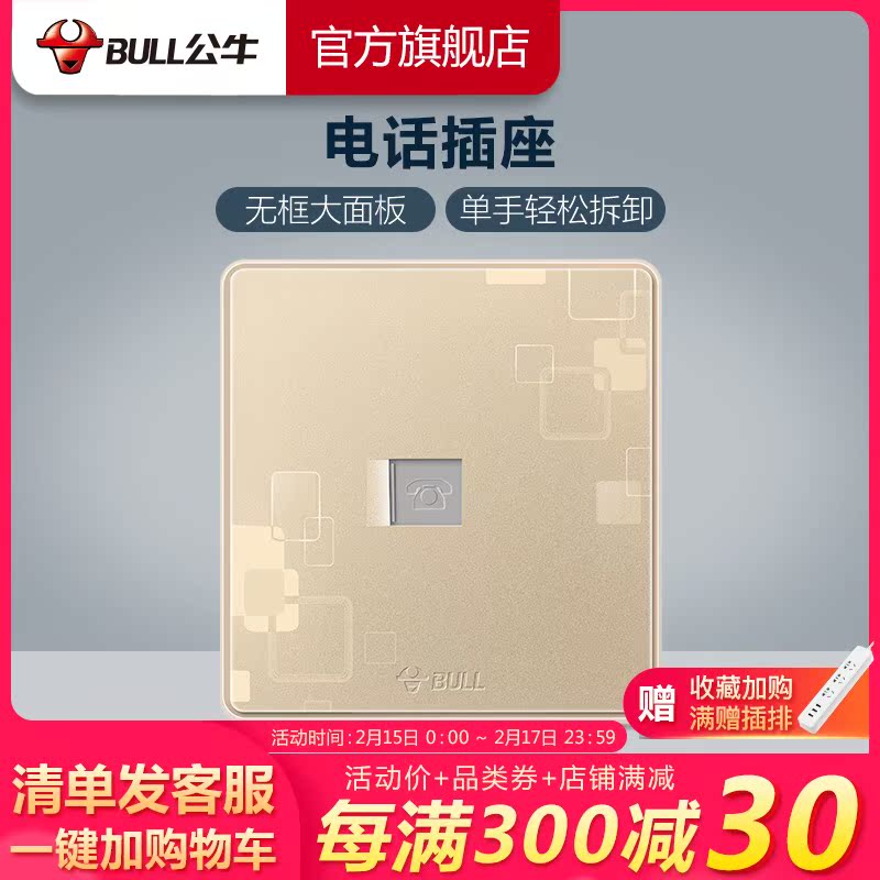 Bull Socket Flagship Telephone Socket Panel Type 86 Hidden Wall Weak Current Socket Telephone Cord Panel G18 Gold