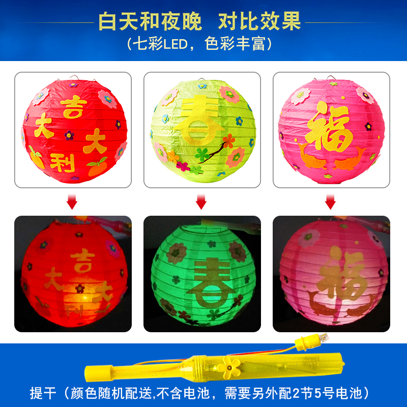 New Year's Day National Day lantern festival Fufu character lantern handmade diy paper lantern handheld luminous Spring Festival children's lanterns