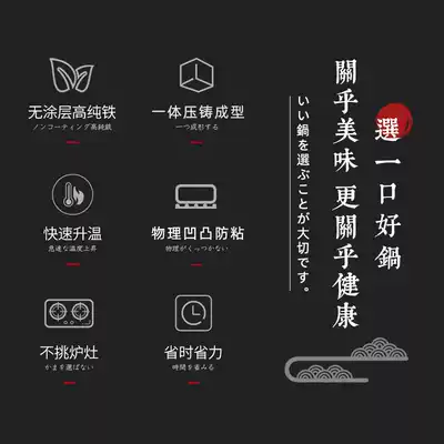 Pearl Life Japanese imported household thickened non-coated not easy to stick wok wok iron pan pan bottom iron wok cooked iron pot