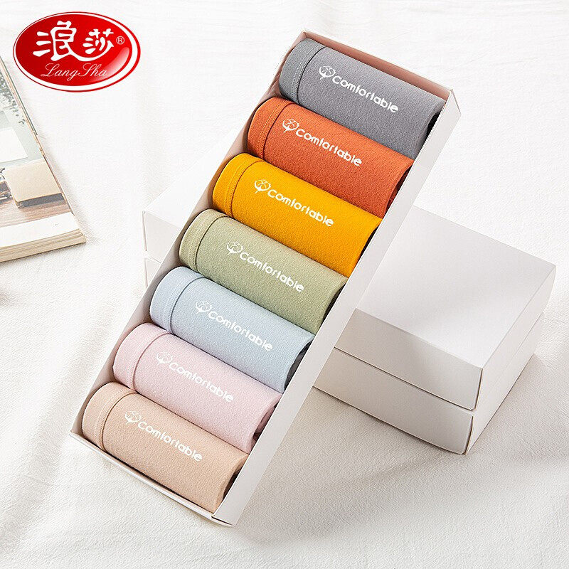Langsha ladies cotton underwear 7 teen girls mid-waist solid color cartoon simple triangle shorts head campus