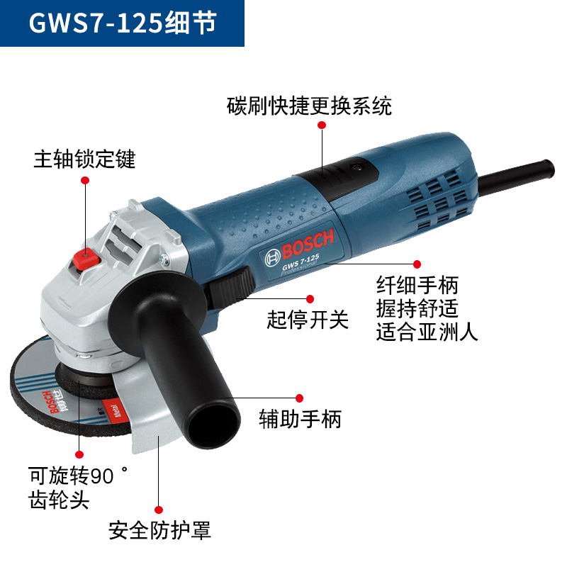 BOSCH Bosch angle grinder GWS7-125 angle grinder high power 125MM metal grinding and cutting machine