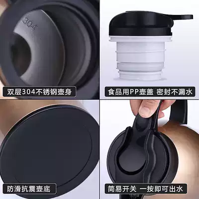 Pickup thermos pot household 304 stainless steel coffee warm kettle vacuum bottle insulated kettle large capacity 2L