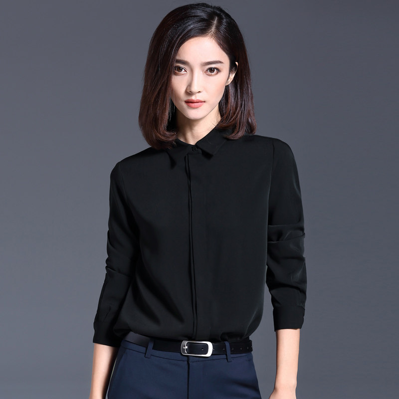 Black shirt woman sleeves bottom fashion gas profession with temperament 2023 Spring and Autumn New Chip Shirt Shirt Shirt