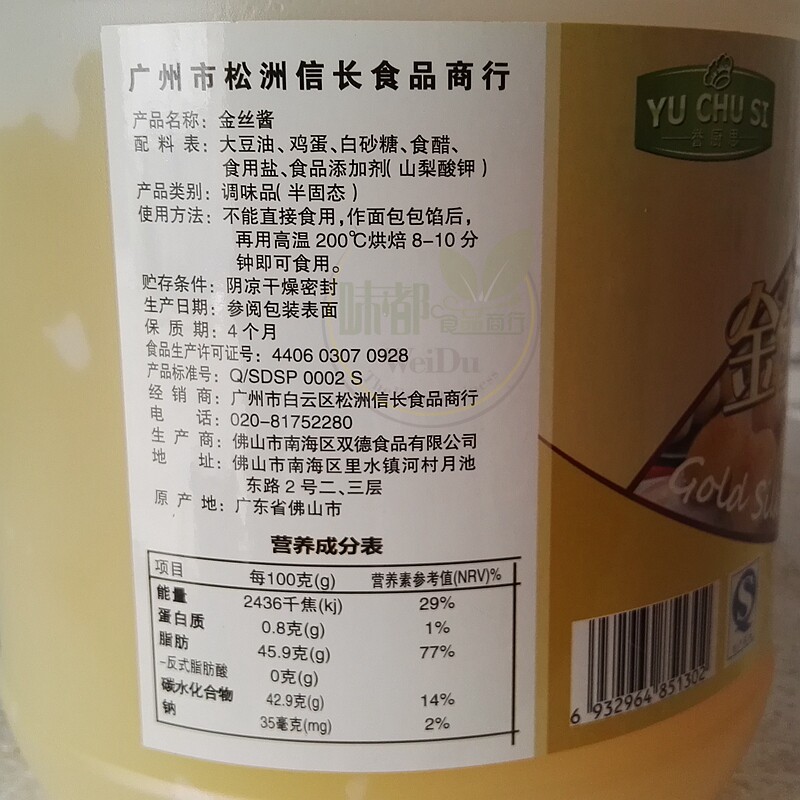 Golden Silk Sauce Renowned Kitchen Silk Sauce 2kg * 2 cans of pastry Snack Filling with Meal Wrap special
