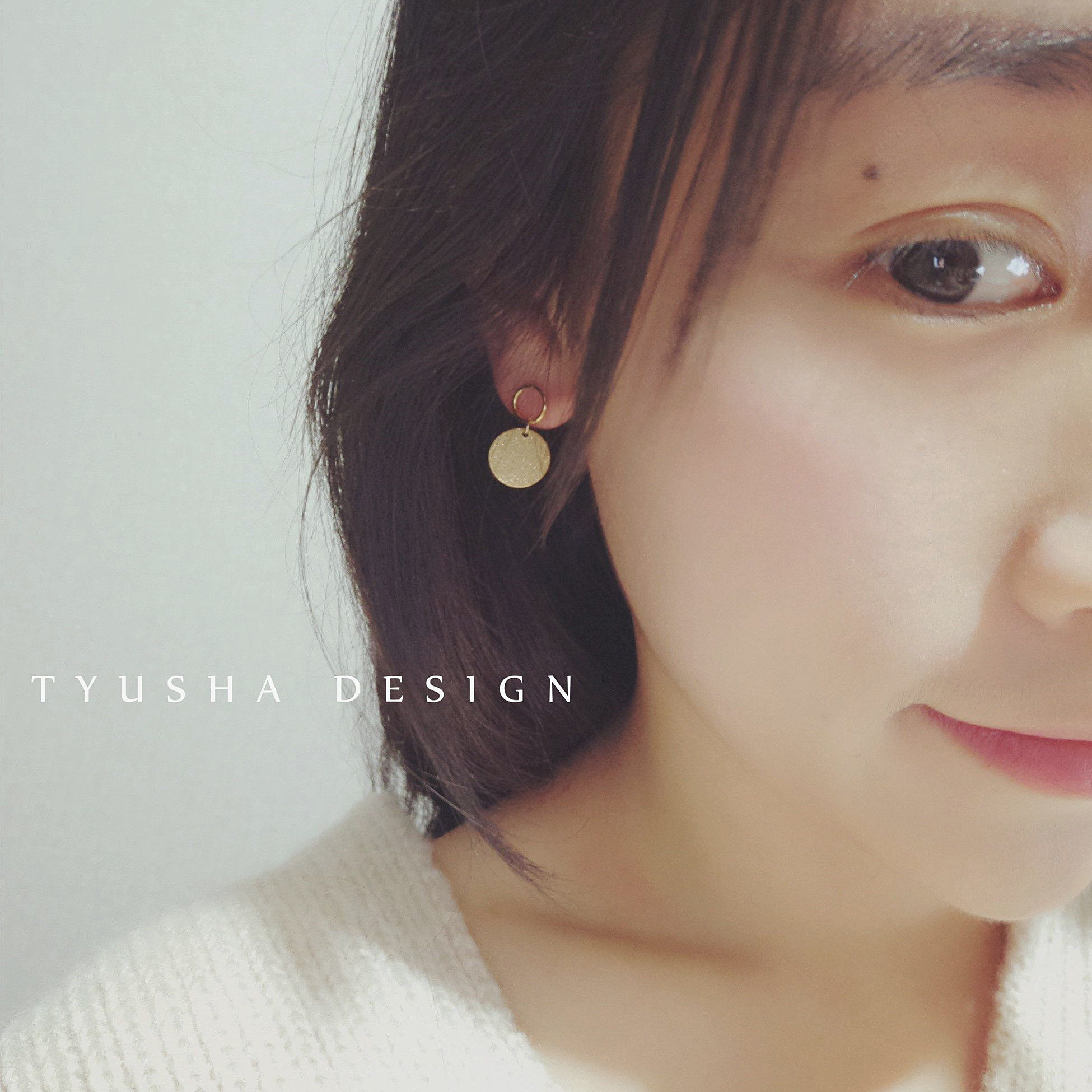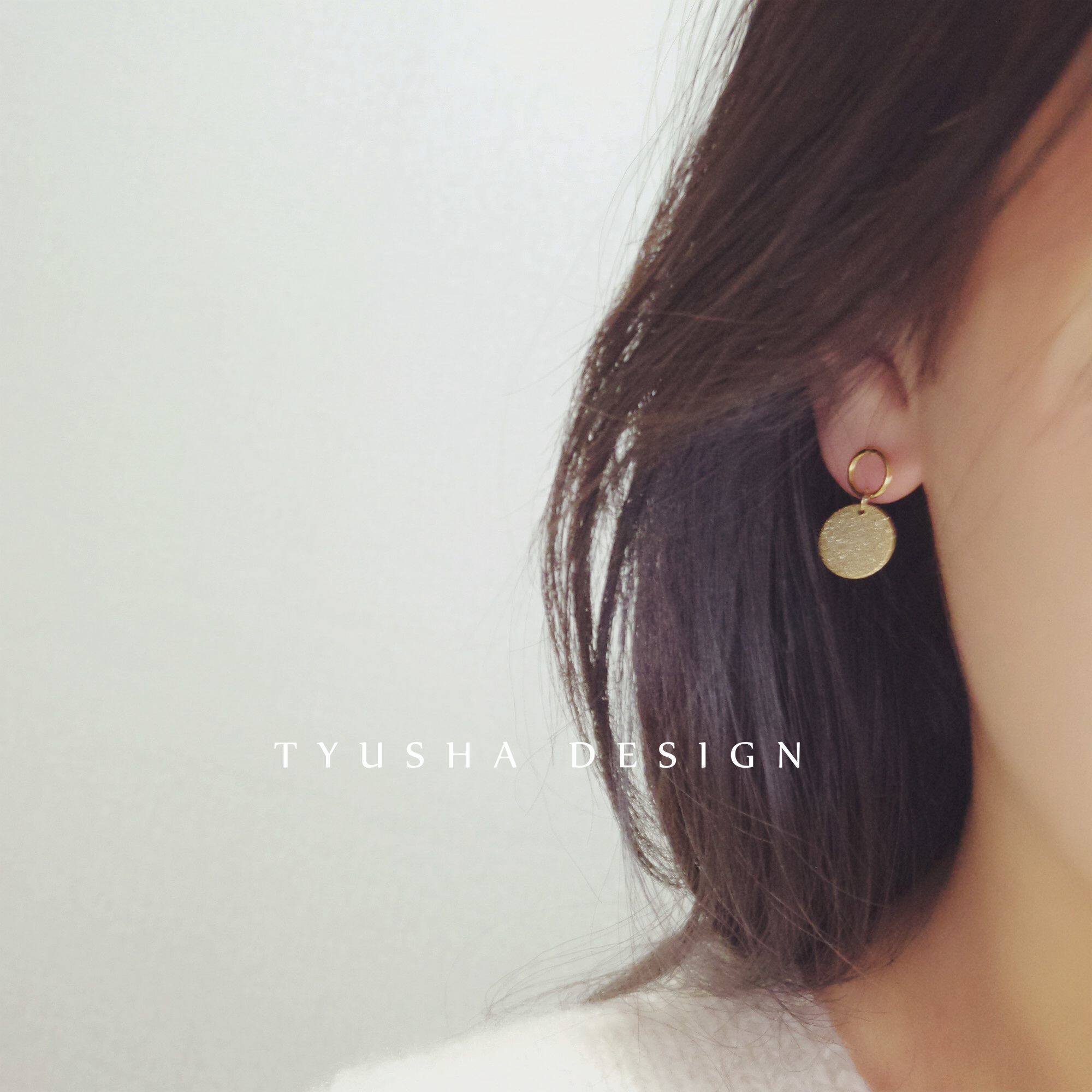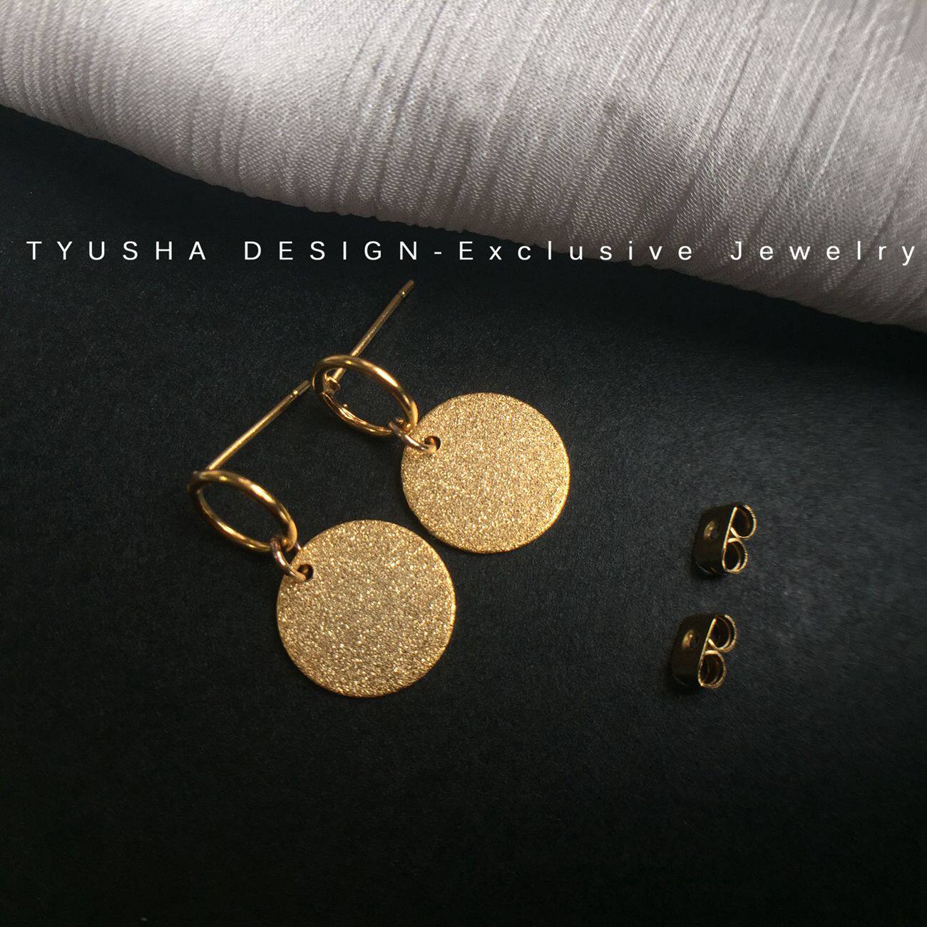 TYUSHA design 18K gold gold gold ring frosted round plate round card earrings earrings ear needle quality model