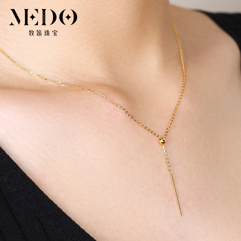 18K gold adjustable needle necklace color gold DIY pendant safety buckle chain element chain au750 wearing pearl universal chain