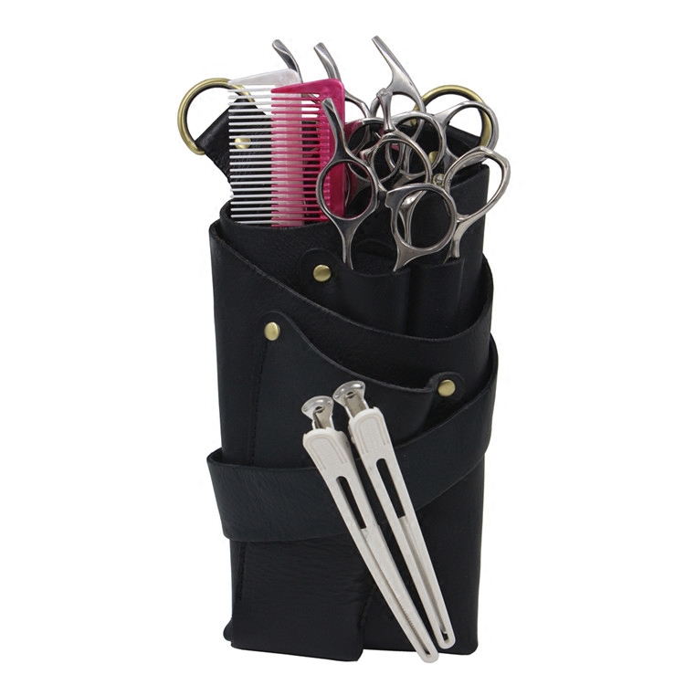 Japan BM first layer cowhide scissors bag leather hairdresser hair stylist pocket can be slanted to hold 5 scissors