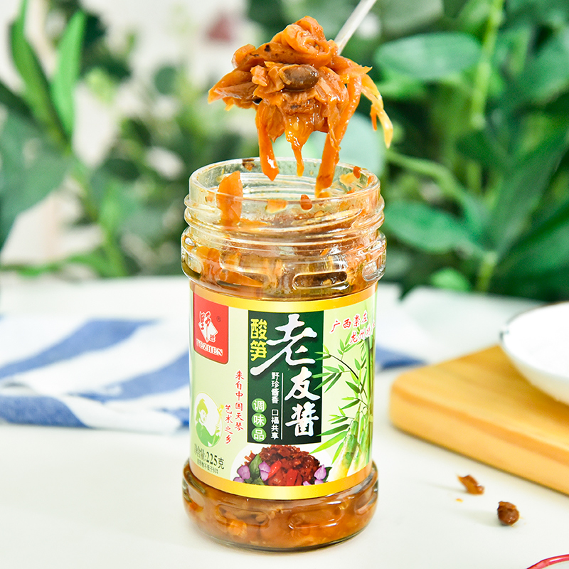 Wild treasure sour shoot old friend sauce 225g Guangxi Chongzuo Longzhou specialty Nanning old friend powder sauce is not spicy old friend field snail