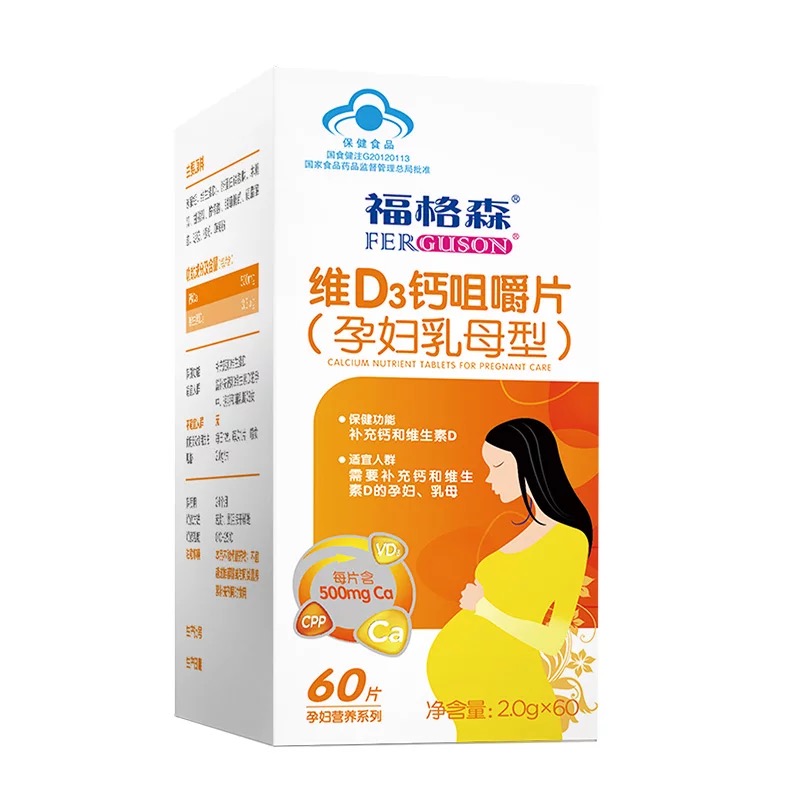 (1 box free 30 tablets)Fogerson pregnant vitamin D3 calcium tablets Pregnant and lactating maternal chewable tablets 60 tablets