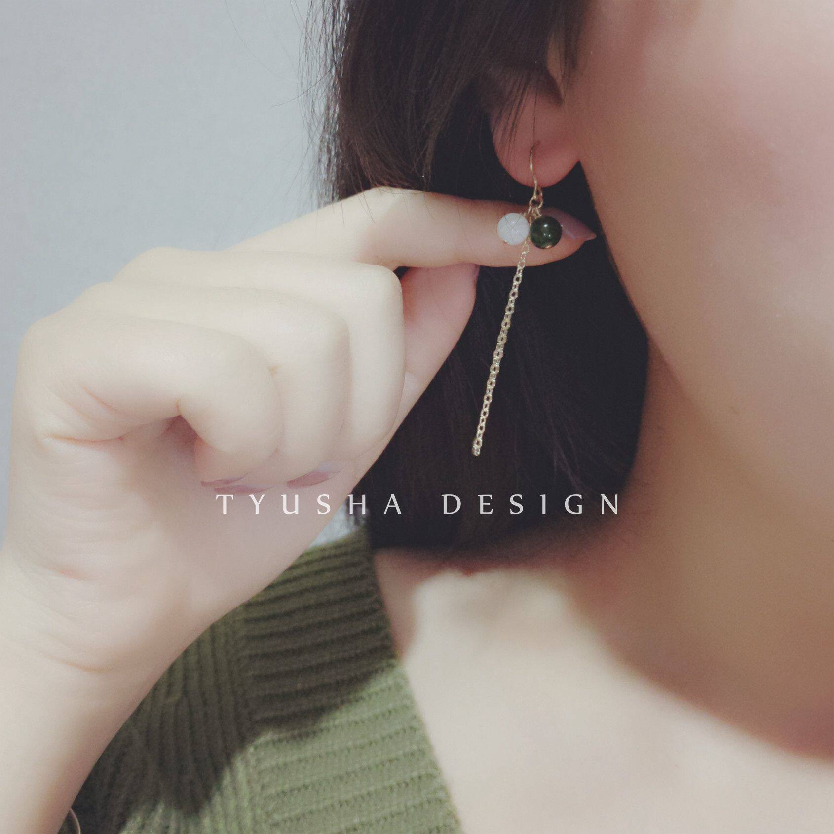 TYUSHA design imported 14K package gold injection gold natural jasper white butterfly shellfish long chain earrings non-fading hypoallergenic