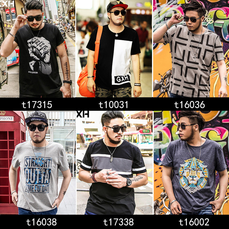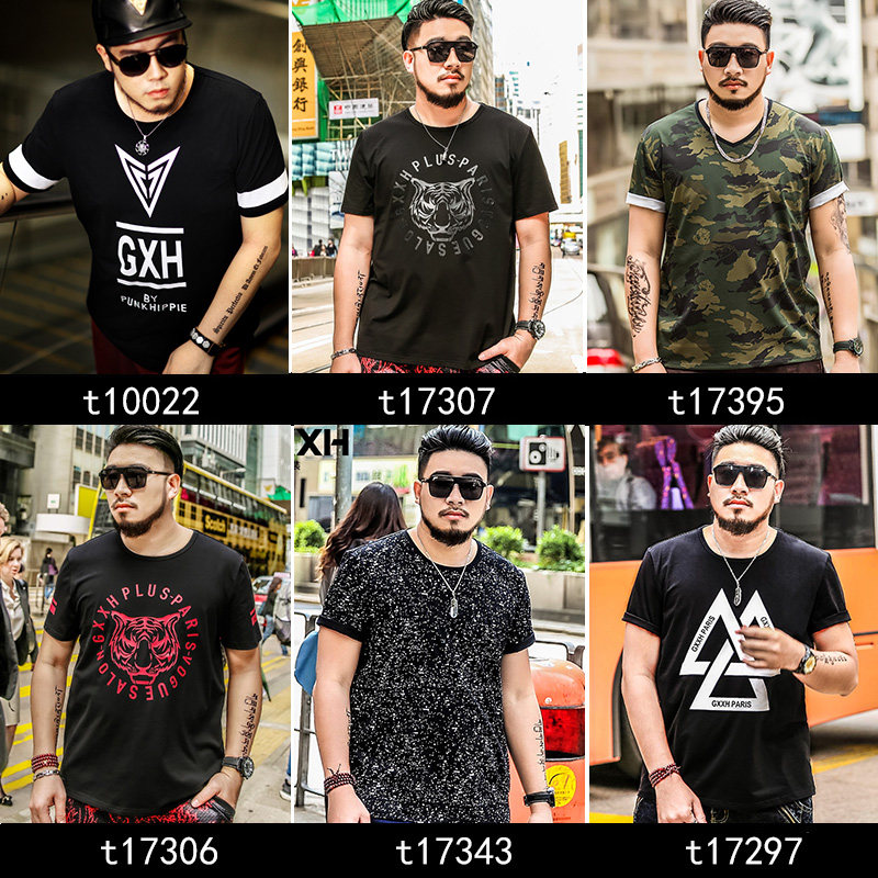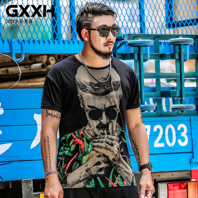 GxxH Fat guy short sleeve t-shirt big size man 200 catty chubby chubby card plus fattening up the loose trend men's summer