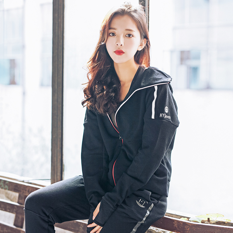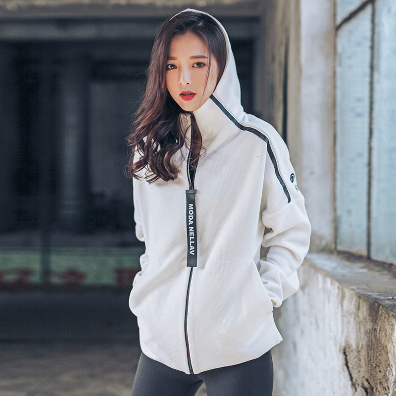 Spring and autumn sports jacket Fitness running top Women's quick-drying long-sleeved zipper hooded sweatshirt Yoga suit casual loose