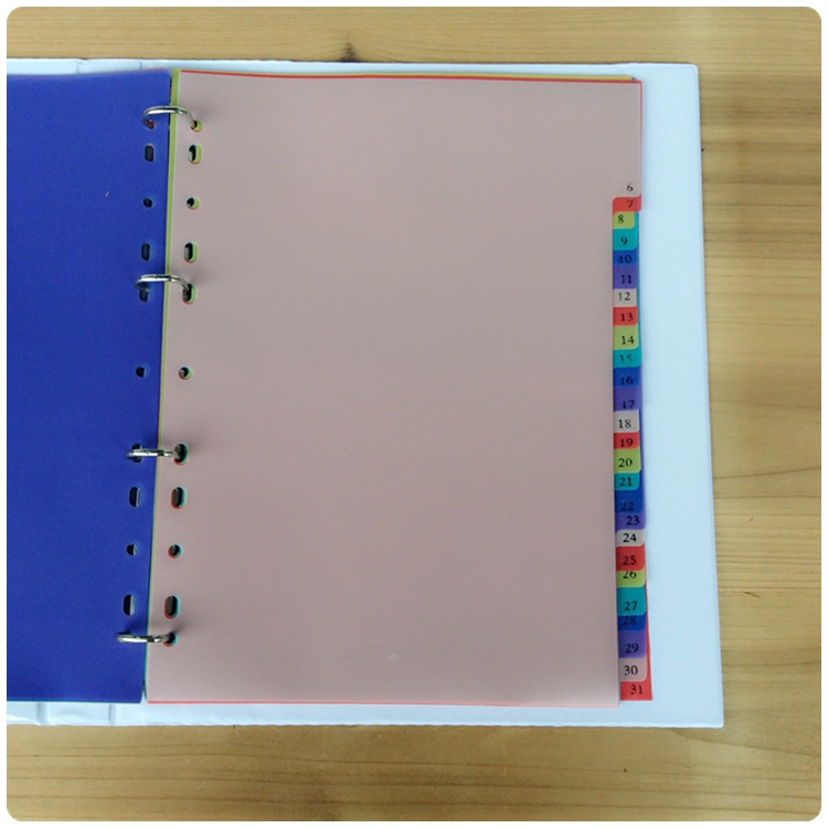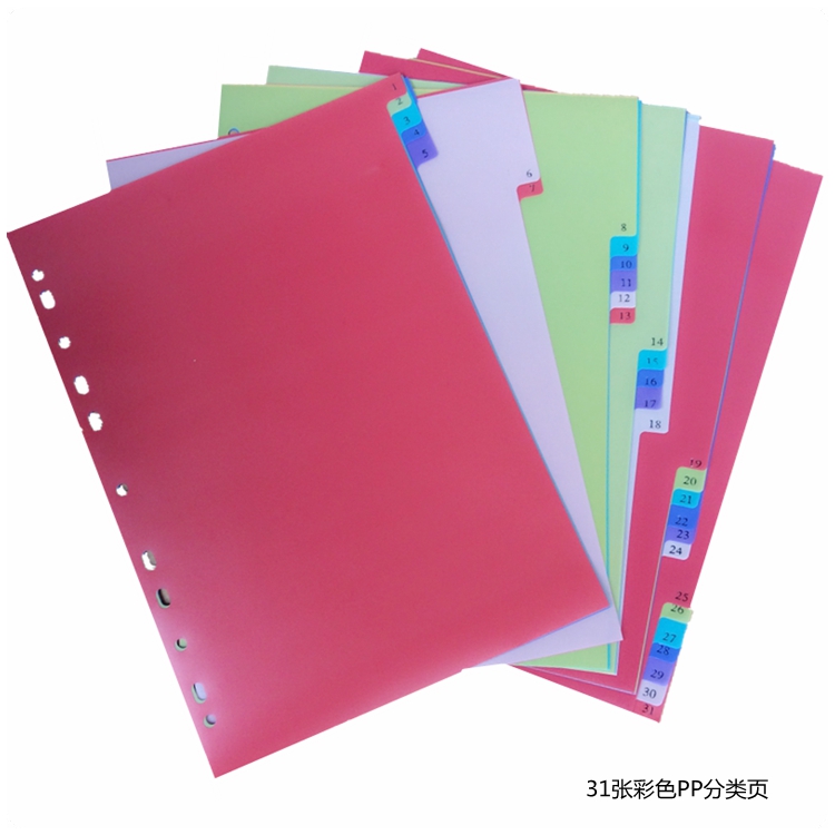 PP plastic split paper color a4 paper 11 hole loose leaf paper sorting paper 31 pages file index paper label