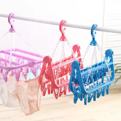 32 clip foldable multi head adult drying rack plastic multi clip children's sock rack clip hanger clothes rack