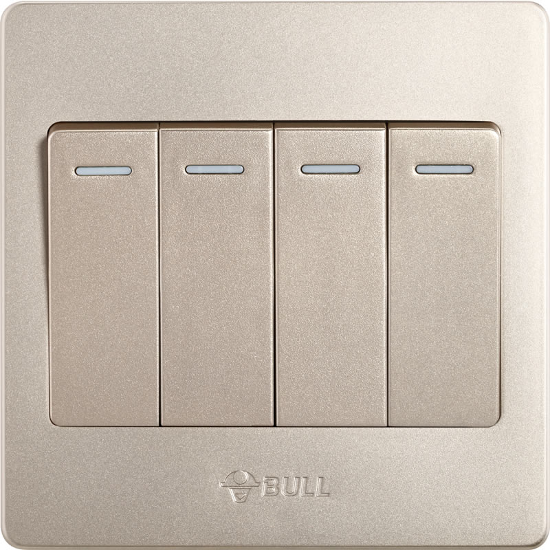 Bull Four Open Duplex Double Cut Electric Light Switch Panel Home Concealed 86 Type Champagne Gold Decorative Wall Switch Socket