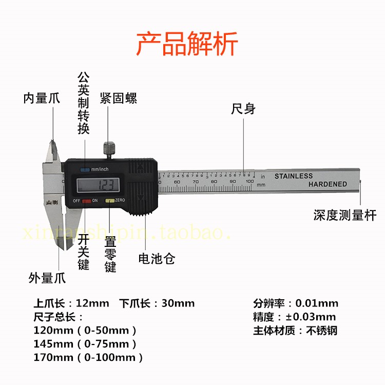High precision pocket digital display portable mini electronic cursor jewellery Wenplay card ruler 0-50 75 80100m m