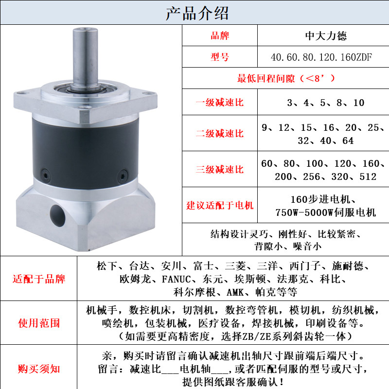 ZD large precision planet 60ZDF5-400T1 60ZDF10-400T3 can be equipped with Panasonic 400 servo motor