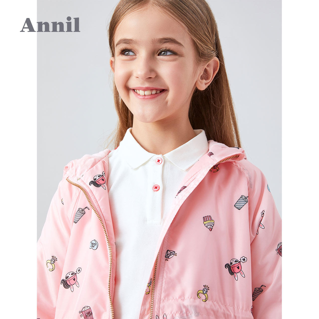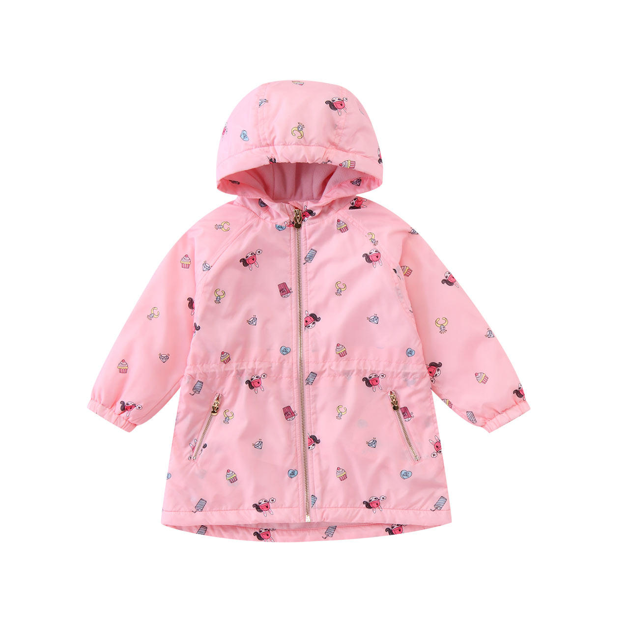 Annil Child Clothing Girl Garnter Windcoat Jacket Autumn Winter Double cap with long version printed cashew jacket