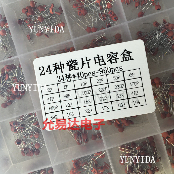 Porcelain chip capacitor packs 30 kinds 10 each, a total of 300 porcelain chip capacitor boxes 24 kinds 40 each total 960 porcelain chip capacitor packs 30 kinds 10 (2 packs) porcelain chip capacitor packs 3