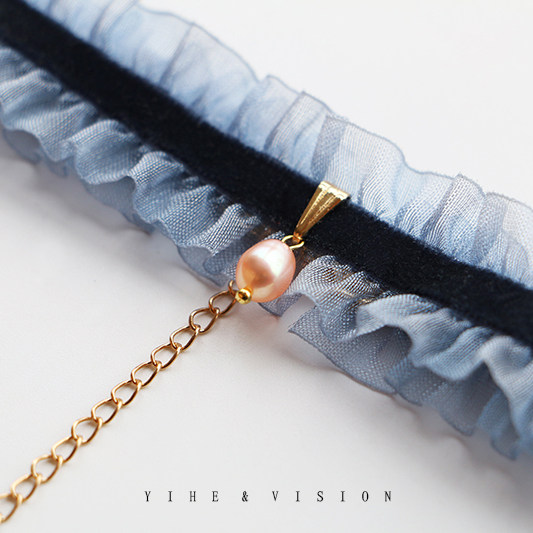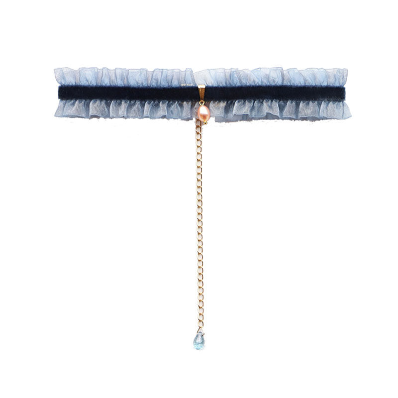 YIHE French elegant cool tone quiet blue velvet pearl choker temperament girl gift neckband