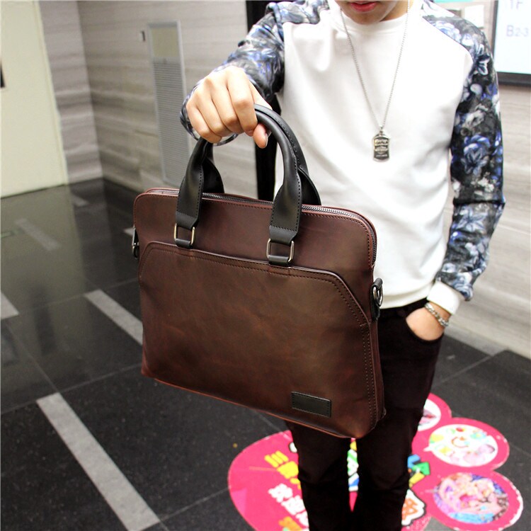 2022 new business handbag men's retro stereotyped briefcase horizontal men's shoulder messenger bag casual bag tide