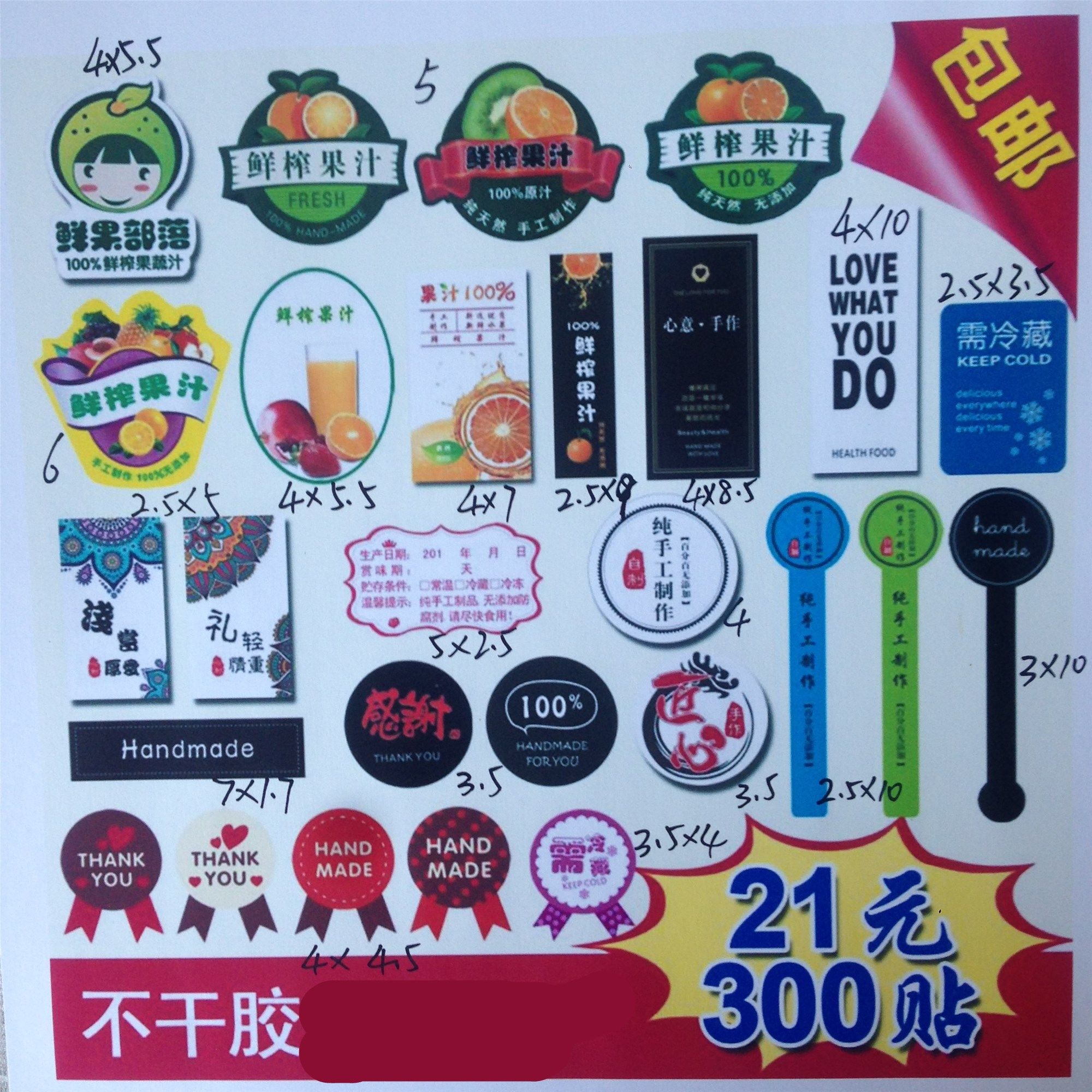 Flower color small number green seal 300 sticker small number yellow seal 300 Fresh fruit tribe 300 paste FRESH juice 300 stick red silk with juice 300 stick with elliptical juice 300 post 10