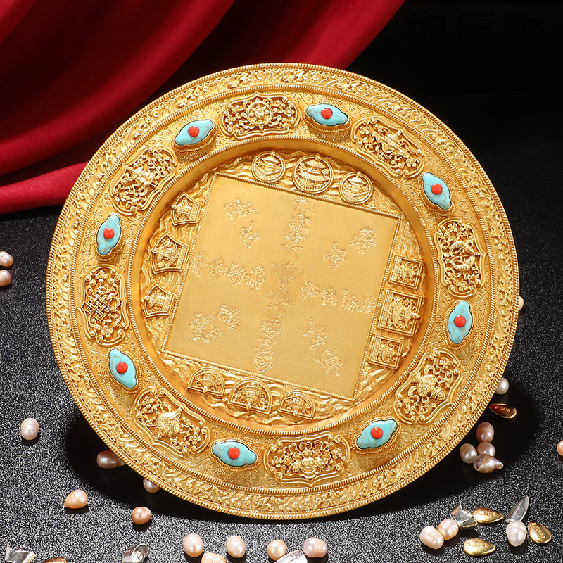 Pure Bronze Manza disc Cure Gold Three-seventeen for eight auspicious Man Tea Roof Seven treasures Manda disc Miocha Con