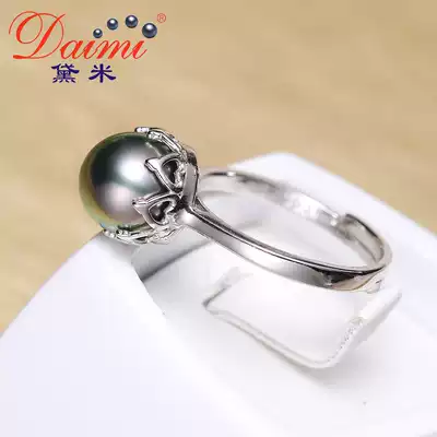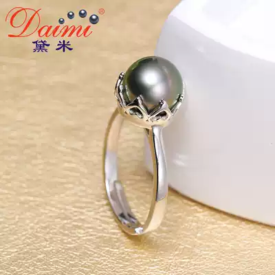 Demi Jewelry Ke Yao 9-10mm round strong glossy Tahitian black pearl ring sea water ring S925 silver