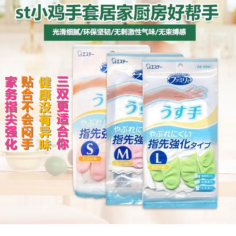 Japan Import ST Chicken Tsai FAMILY resin housework gloves anti-cracking open fingertips reinforced gloves SML code