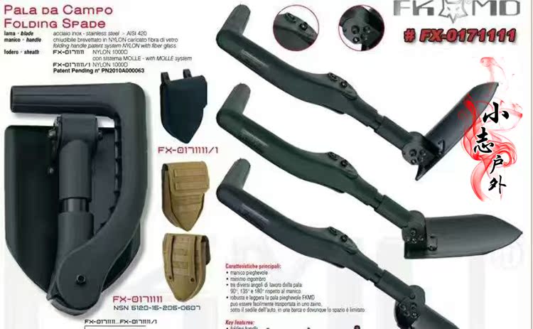 (Crown) FOX Italian Fox FX-0171111 Black Folding Shovel Corps Shovel Outdoor Shovel