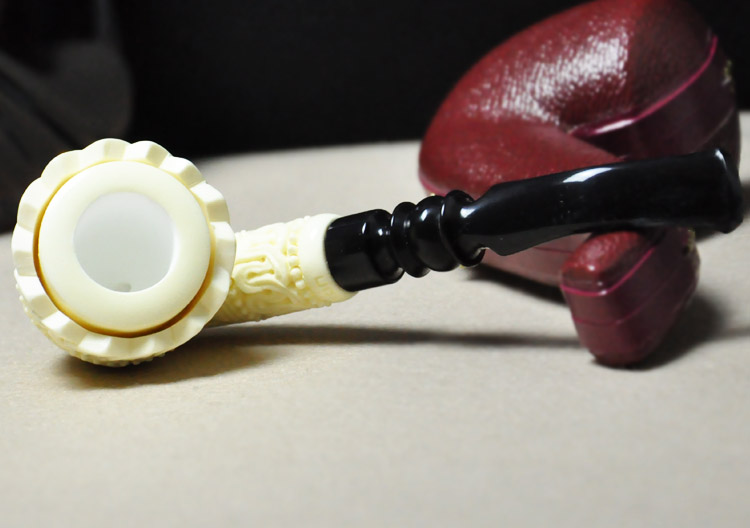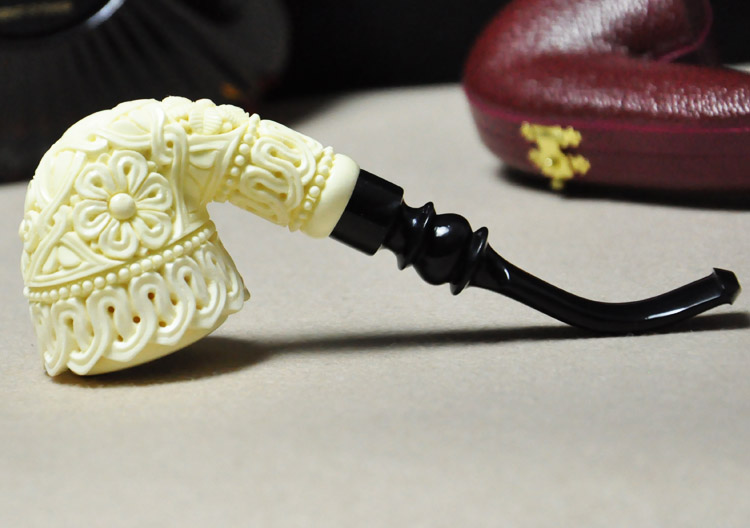Raw stone spot Turkish super carving master TEKIN meerschaum pipe large hollow flower basket curved bucket