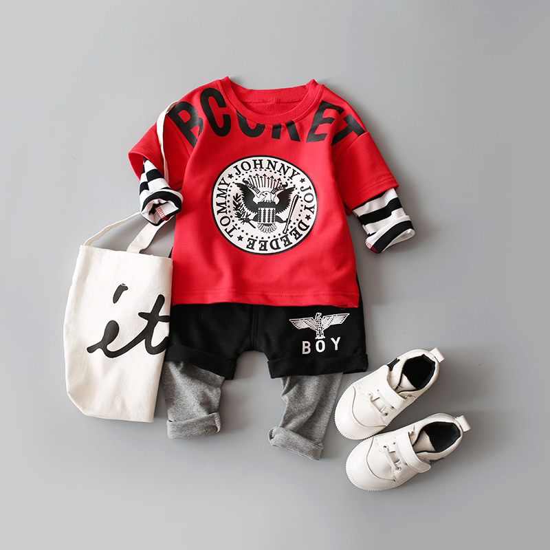 Little boy baby spring handsome spring and autumn clothes fake two-piece suit baby trendy children's clothing 1-3 years old and a half